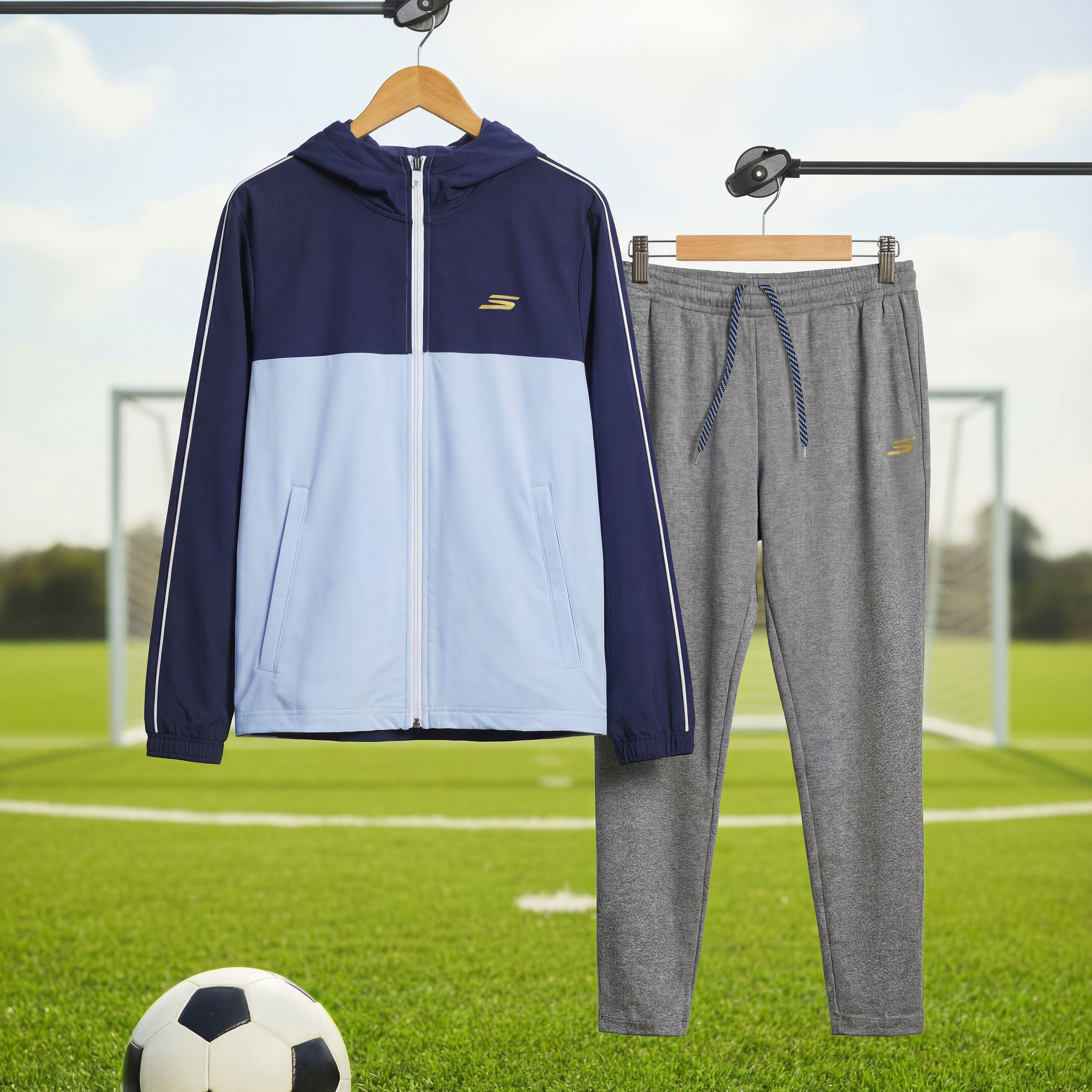 - Full-length track pants